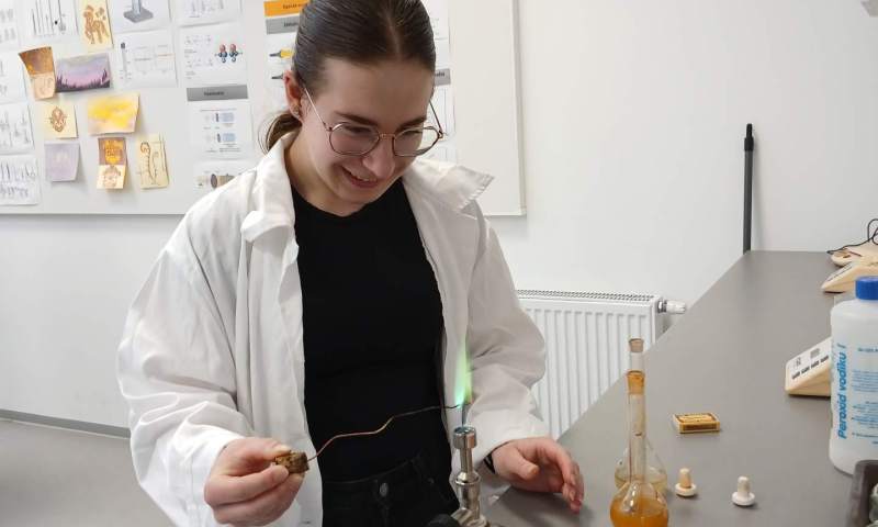 V pondělí 20.4.2026 se žáci 8. ročníků zúčastnili výukového programu Chemická laboratoř ve spolupráci s gymnáziem v Říčanech. Osmáci si prohlédli vybavení chemické laboratoře, vyzkoušeli si 5 chemických experimentů a mnoho chemických dovedností. Nakonec vyplnili pracovní list a zaznamenali výsledky svých pozorování.